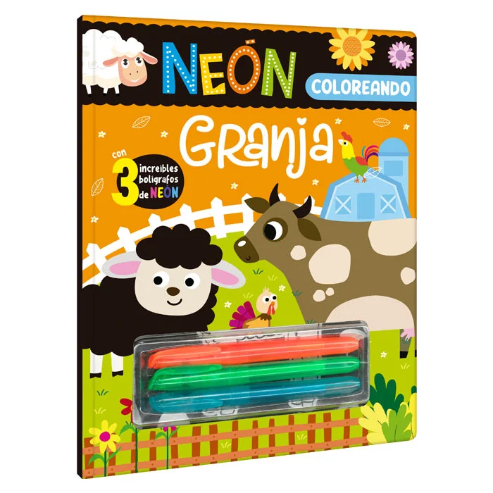 Este libro de animales de la granja para colorear, está diseñado para dar el efecto más vivido cuando se aplican colores fluorescentes. Contienen tres bolígrafos de neón para que los niños coloreen imágenes impresionantes. Las páginas negras hacen que los colores resalten y destaquen.