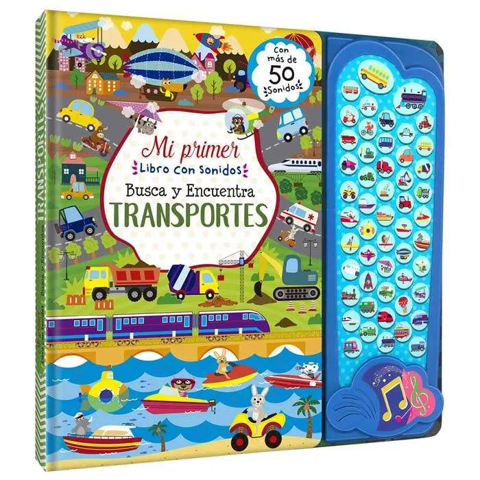 En libro con Sonidos, busca y encuentra Transportes, los niños aprenderán mientras se divierten pulsando los botones y escuchando los sonidos. Además de las divertidas imágenes para buscar y encontrar. Los pequeños mejorarán sus habilidades de observación, descubrirán y conocerán los medios de transportes de aire, tierra y mar.